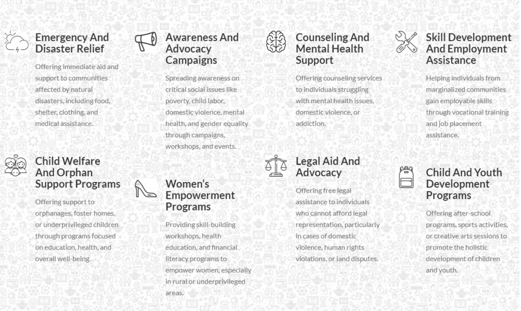 **Mission**: “To combat poverty by engaging in in-kind donation activities, creating awareness about the role of charity, and empowering underprivileged communities through comprehensive support services and grassroots engagement.”